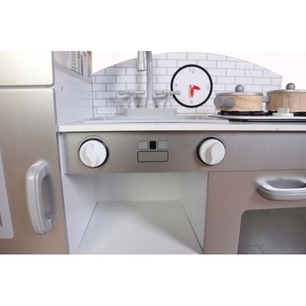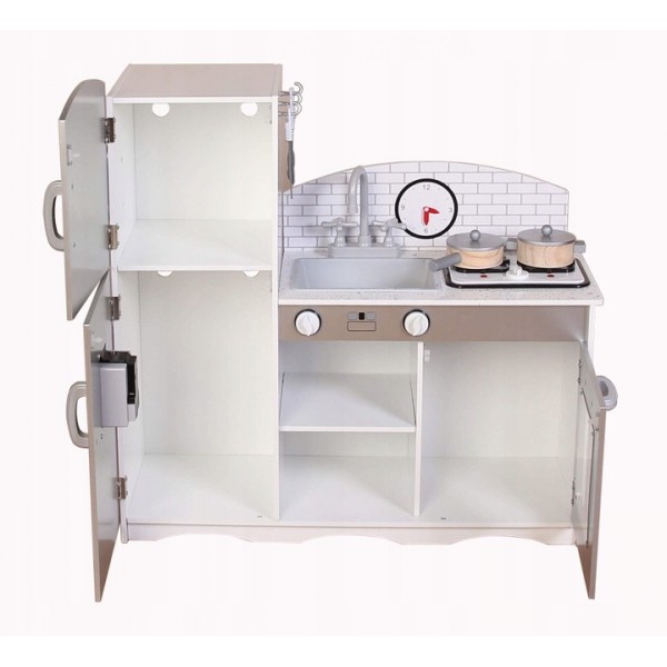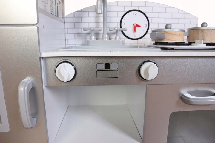 - С заботой о самых маленьких, игрушка изготовлена из высококачественных, натуральных материалов. Кухня сделана с расчетом на высокую безопасность - без острых краев и опасных поверхностей.