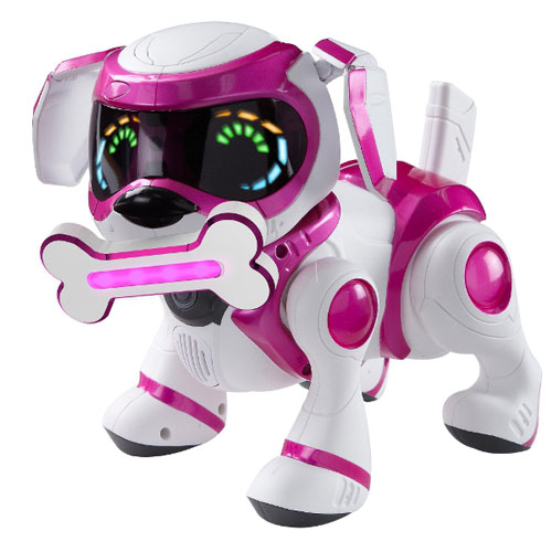 Интерактивный щенок Текста (TEKSTA Robotic Puppy) реагирует на голос и прикосновения, управляется жестами рук, ходит (гуляет), сидит, двигает головой и ушами, и даже делает сальто назад! Может взаимодействовать с другими роботами Teksta. Возможно беспроводное программирование при помощи планшета iPad Apple.