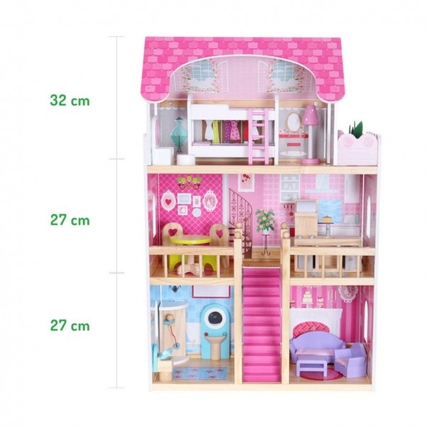 - ECO TOYS Residence Residence Mowa Malinowa (411) - уникальный кукольный домик сделанный из натуральнгого дерева, идеально подходит для долгих часов развлечения девочек и ее подруг.
